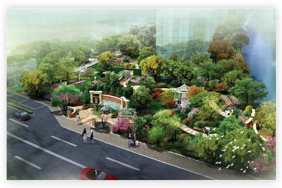 Project Description: in the British rural style, the existing riverside environment at one corner will be transformed to provide a display effect as a residential building under development