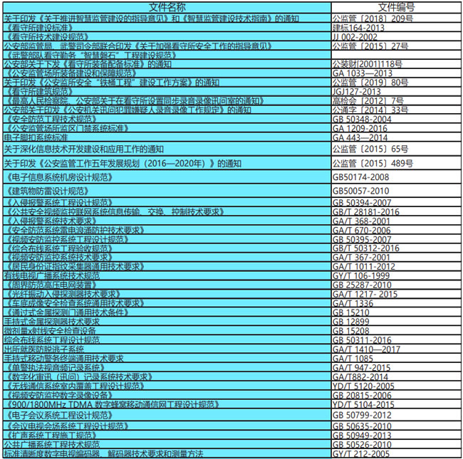 According to relevant national standards and specifications, with reference to international general rules, and in combination with the functions to be realized by the detention house intelligent project, the project construction environment and other specific characteristics, a "serious, reasonable and perfect" design scheme is provided. To ensure the simplicity and practicality of the detention center, the specific standards are as follows: