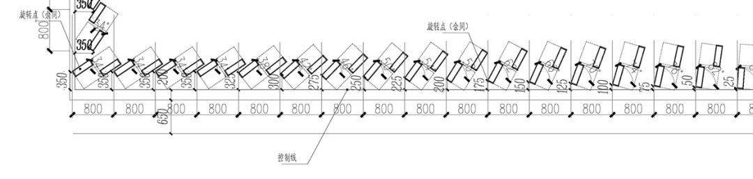 通过U玻的竖向参数化干扰,在保证U玻的结构稳定性和材料安全性基础上,经过电脑参数反复推敲、对比,最终确定控制倾角在3度可以保证较好的立面效果。