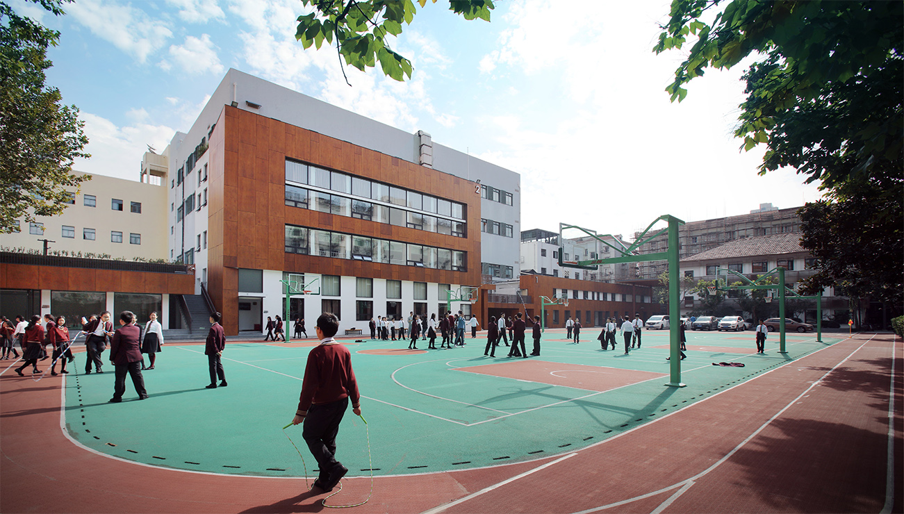 教育, 随着上海中心城区更新的推进,也逐渐出现了不同的发展需求:一方面,随着老龄化和中心区人口的外迁,逐步的校舍资源有所释放,另一方面,中心城区同样面临国际化、先进化的功能配置需求和城市功能升级。而优秀教育资源的导入也需要新的硬件条件加以支撑,本项目正是基于这两点,对原有教育资源的改造。