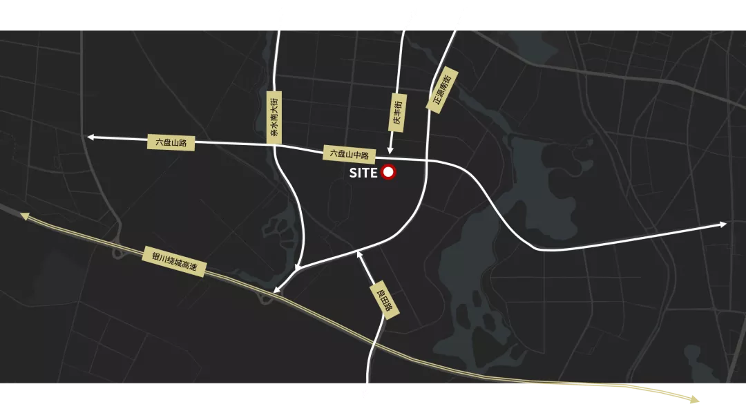 银川市虽然地处西北干旱地带,却拥有江南一样丰富发达的水体系统,湖泊湿地众多,素有“塞上湖城”的美称。项目场地位于六盘山中路与正源南街交叉口,银川市城南片区文化生态园内部,南侧临湖,自然环境条件良好。