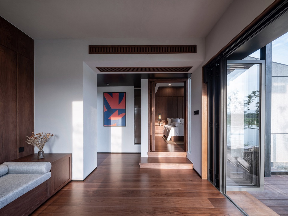 The Wetland Eco Hotel is composed of two types of rooms that are randomly distributed, both creating the feeling of living under a large roof, which also looks like wings of a bird, who settles here, lingers on the island for a while and lands on the water. The ancients like to make objects to adapt to local conditions, lightly intervene in nature and use wood to frame the house on the water, so that the house can be integrated and wrapped by nature. This ecological concept has always been in the bones of Chinese.