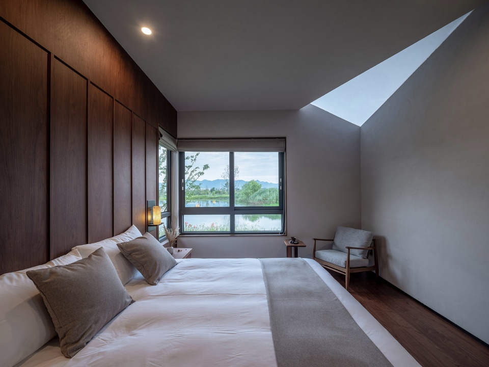 Since ancient times, Fuyang has been a treasured land sit by the Fuchun River. The restored Yangbei Lake Wetland is divided into a larger part and a smaller part in a long strip which two parts are connected by a wooden arch bridge and surrounded by a large area of water and vegetation, featuring a unique landscape and good privacy, which makes it great choice for scattered small guesthouses.