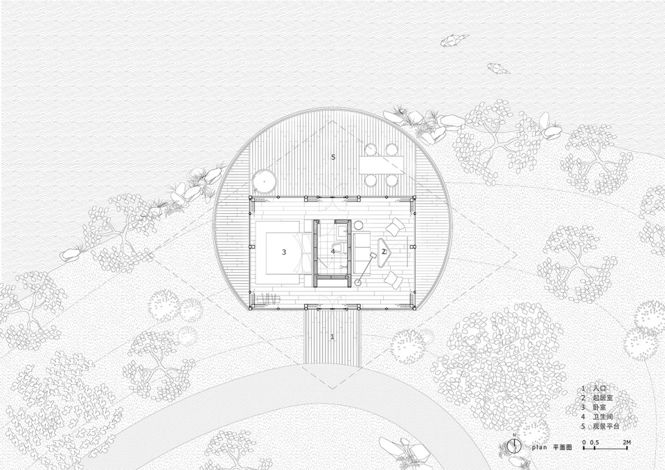 ▼湿地岛上私密的七个客房,Seven private rooms distributed on the Wetland Island