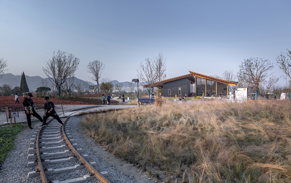 ▼从铁轨看向接待中心,The reception center looking from the rail tracks