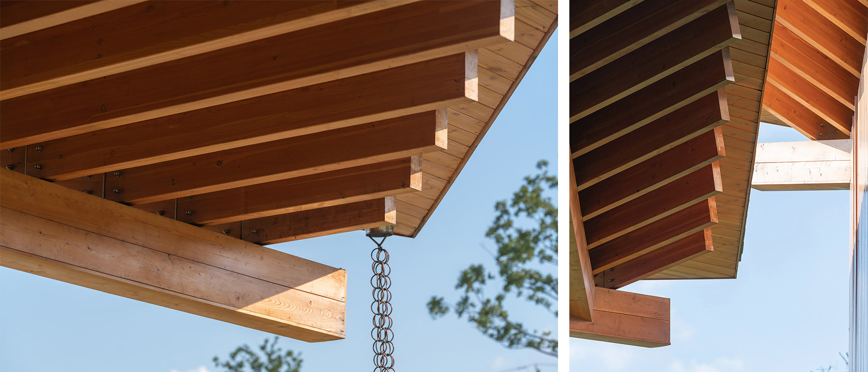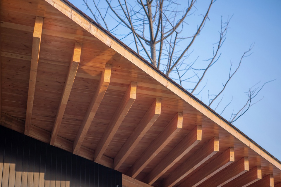 ▼出檐木结构屋顶细节,Details of the roof with overhanging eaves