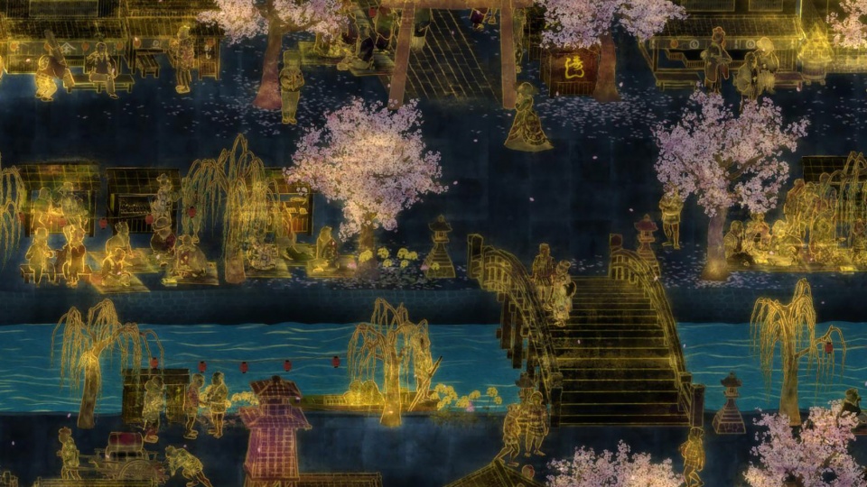 在艺术品中,早晨和晚上将随着现实世界中的时间流逝,人们的日常生活也随着时间和天气的变化而变化,庆祝的节日和活动按照季节发生,画卷中每天都上演着各种各样的故事,人们的活动永远持续着。