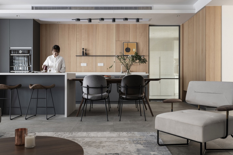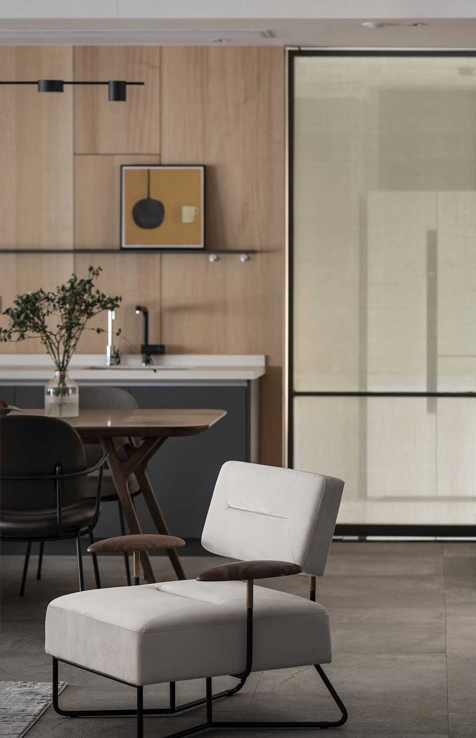 The homeowner in this case is a pair of coffee shop owners, who use interest as work and let the homeowner accumulate a unique philosophy of life: life needs to forward, but slowly. You do not have to do it with 10 points, just make 8 points of effort; the remaining 2 points is the room of manoeuvre and the capital to recharge respectively. This is the “Eight Philosophy” of life, not full and not paranoid, just a harmonious and flexible attitude of life. The designer put the “Eight-point Philosophy” in the space design, creating a modern and high-level sense. While integrating a warm and peaceful living atmosphere, and realising the free transition between work and life of the residents.