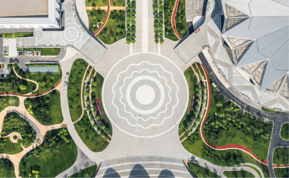 To the east of the main venue is the "seal of prosperity" square. Pomegranate flower, as an urban cultural symbol, has been abstracted and refined to become a significant "mark" in the venue. The surrounding area is surrounded by artificial terrain and whole stone seats, which can carry various large-scale public activities in the city.