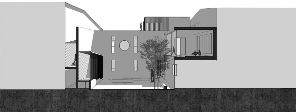 The core of the design is restructuring the circulation of the space. Designers gave up the simple layout of the existing circulation space with hanging stairs directly attached to its entrance. The design creates a longer circulation for people to calm down when entering the main space in the philosophy of Zen Tea. An extra-long, zigzag path is made: people can enter the building from the west side after passing through a long and narrow semi-outdoor corridor.