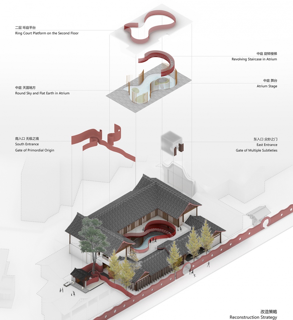 The design of Kuansan Town is derived primarily from ancient Chinese philosophy Daoism and is inspired by multi-century cultural heritages and well-protected historical architectural surroundings. The ‘valley,’ according to the classic Laozi, is a realm of all births, autopoiesis, and an infinite self-generation mechanism. The ‘valley’ is shapeless within, allowing it to take any form. It alludes to the ‘vacancy’ and ‘nothingness’ within the ‘real’, providing the possibility to nurture everything possible.