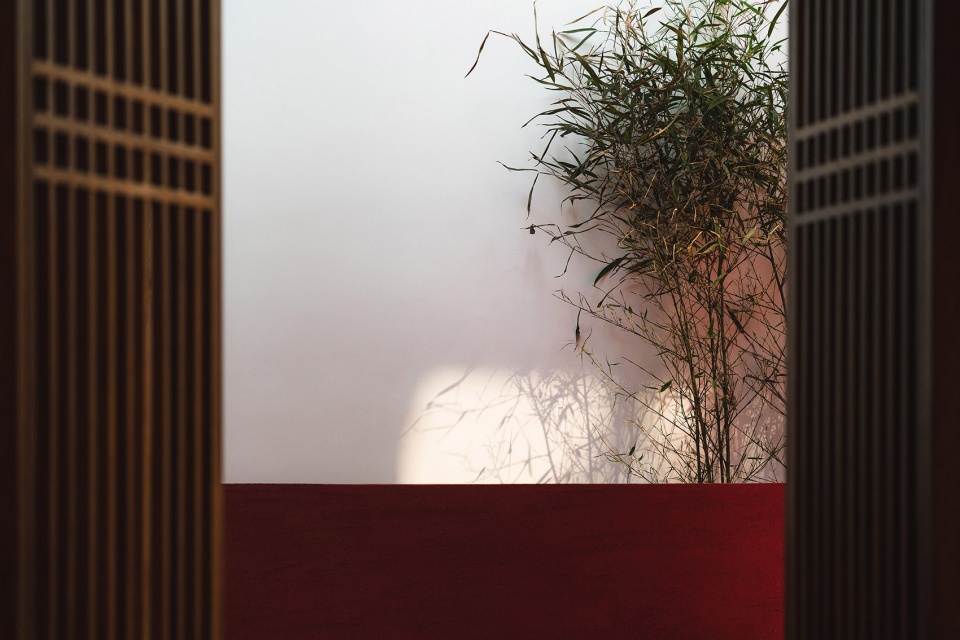 在熙熙攘攘的现代都市,缓缓推开两扇古朴的铜门,蜿蜒的红色景墙散发着浓郁的东方传统美学气息。红墙灰瓦,百年古树屹立其中,向内生长,引导着来者的视线,吸引人们到达“谷”的深处。