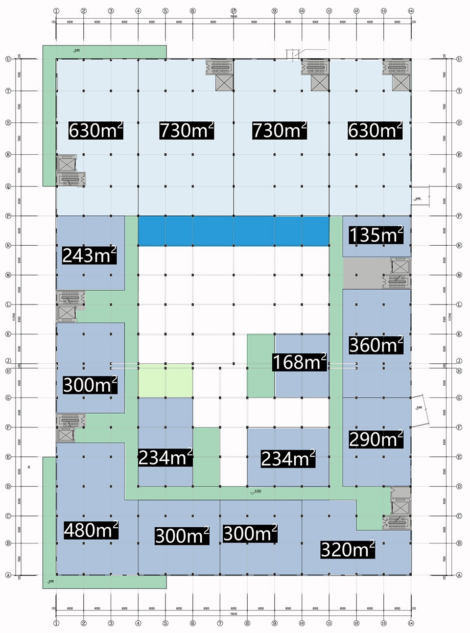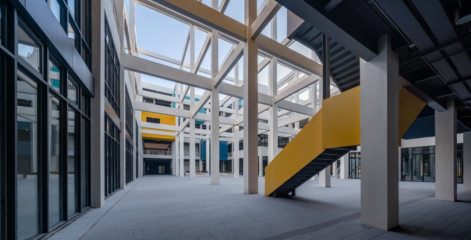 The afternoon sunshine pours into the 55m x 45m courtyard and “echoes” with the building’s beam and pillar system, forming a very dramatic scene experience.