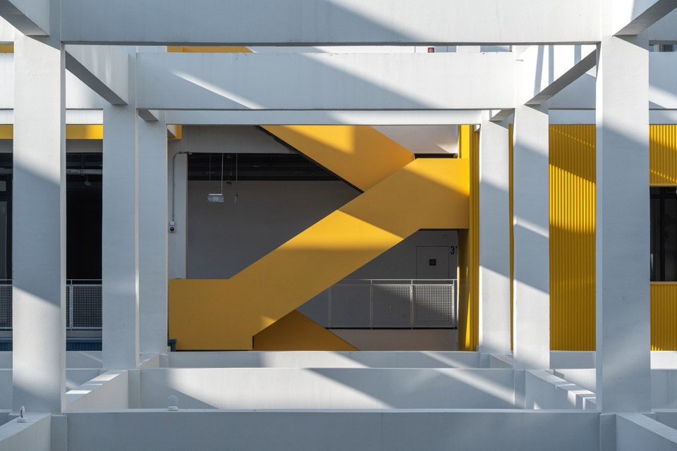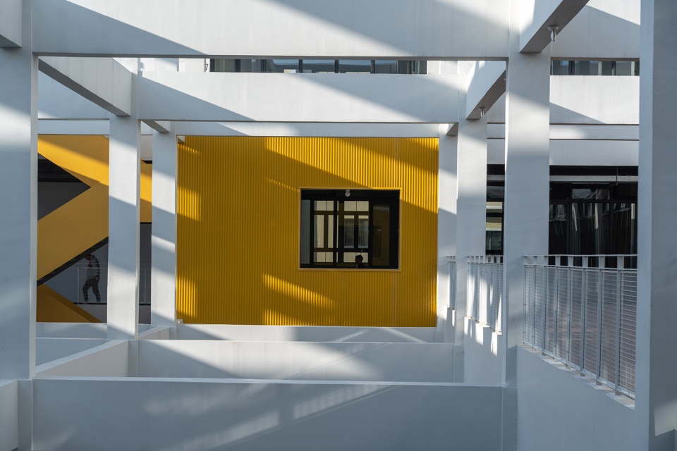 Interestingly, at the beginning of the design, the proprietor purposefully chose Bauhaus, an external feature, as the formal language of the renovation design. In addition to paying tribute to this important event that affects the world design, we believe that we have found a form of integrating science and technology with art in the new science and technology innovation sector of the Shanghai old industrial base, to express the industrial temperament and cultural tradition of the whole region after the renovation. On the one hand, the old industrial factory buildings still show the functionalist tradition derived from a hundred years ago and the aesthetic system of industrial components. On the other hand, we hope this industrial building renovation can transcend the “industrial style” aesthetic routine and convey an internal spirit of scientific and technological innovation. Bauhaus is more like an international symbol, embodying the brilliance of art and crafts.
