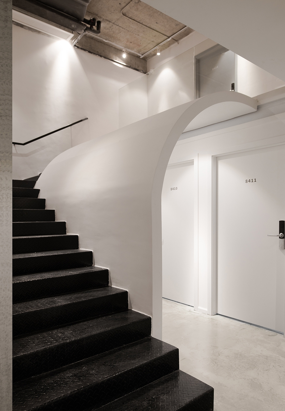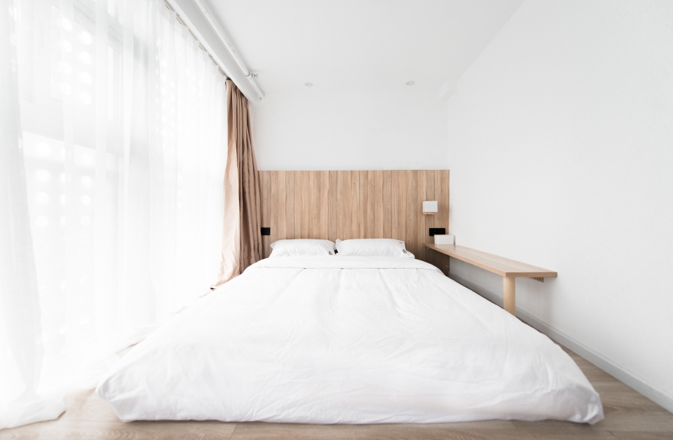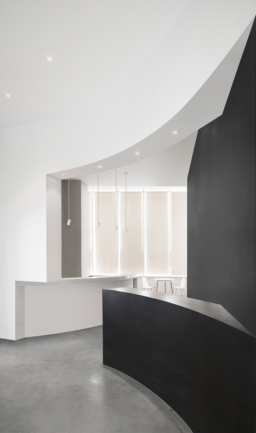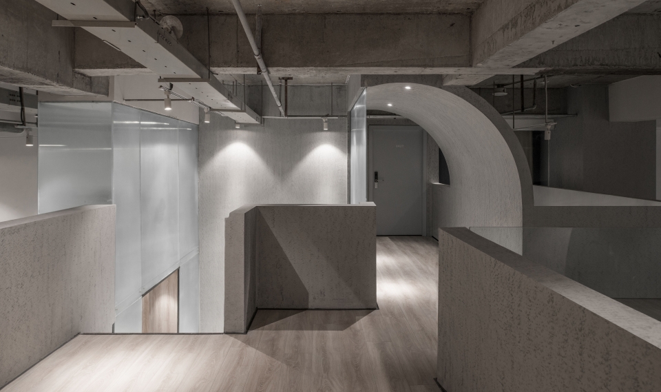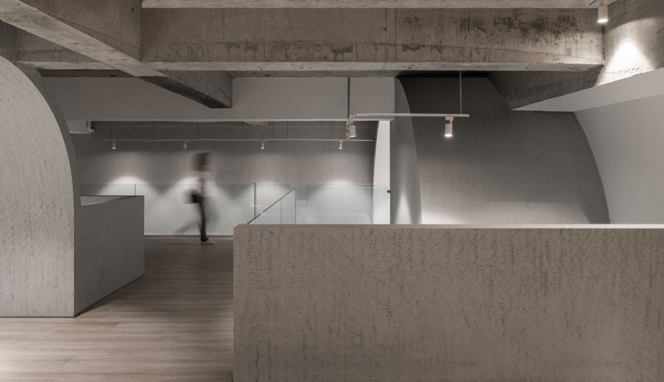 ▼旅社内多处使用了弧形的墙体,为空间增添了层次感
