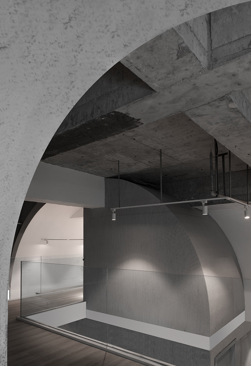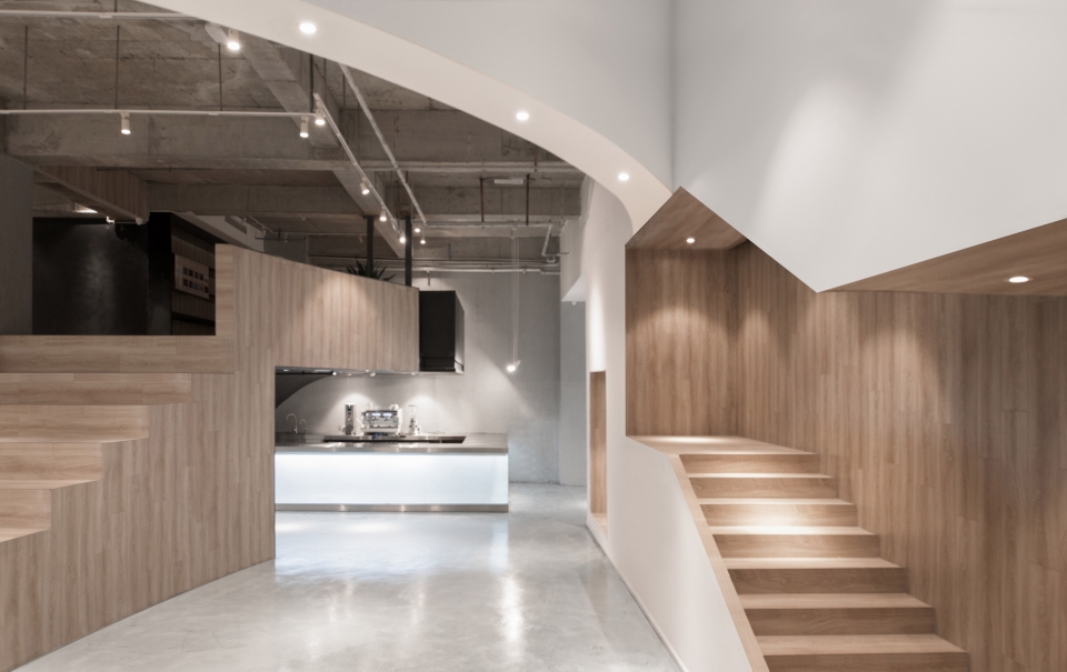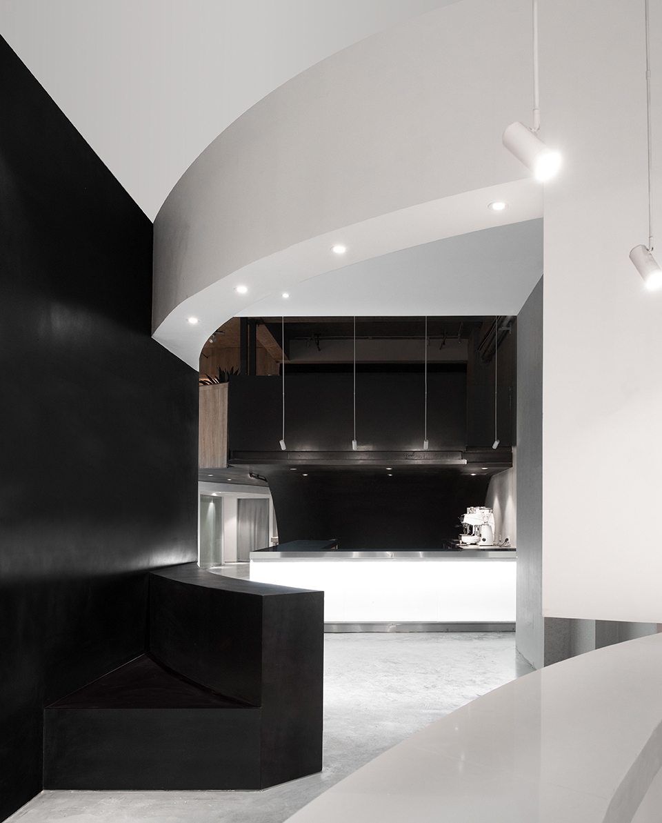 ▼旅社内多处使用了弧形的墙体,为空间增添了层次感
