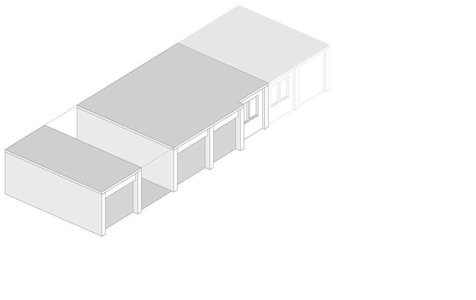 By changing the location of the public passageway, the two separated parts at the ground floor of Area D are combined into one, on the basis of which, the original small space is eliminated, and the internal partition wall is tore down to maximize the space potential.