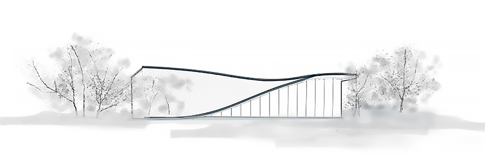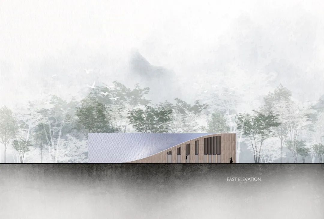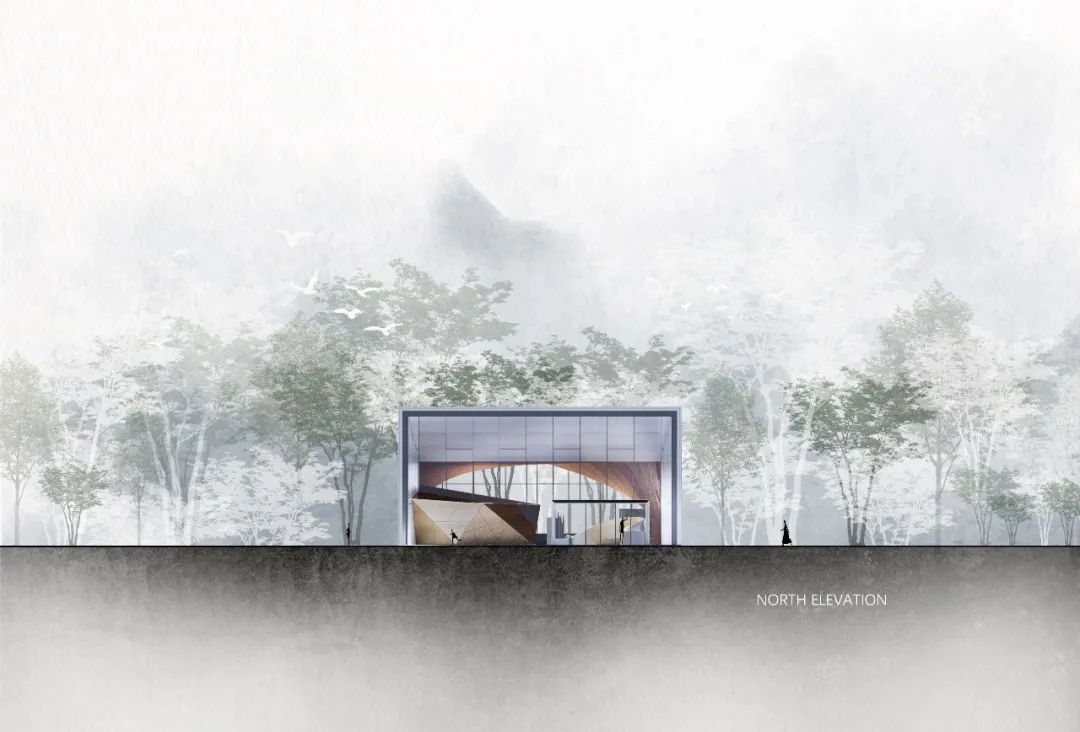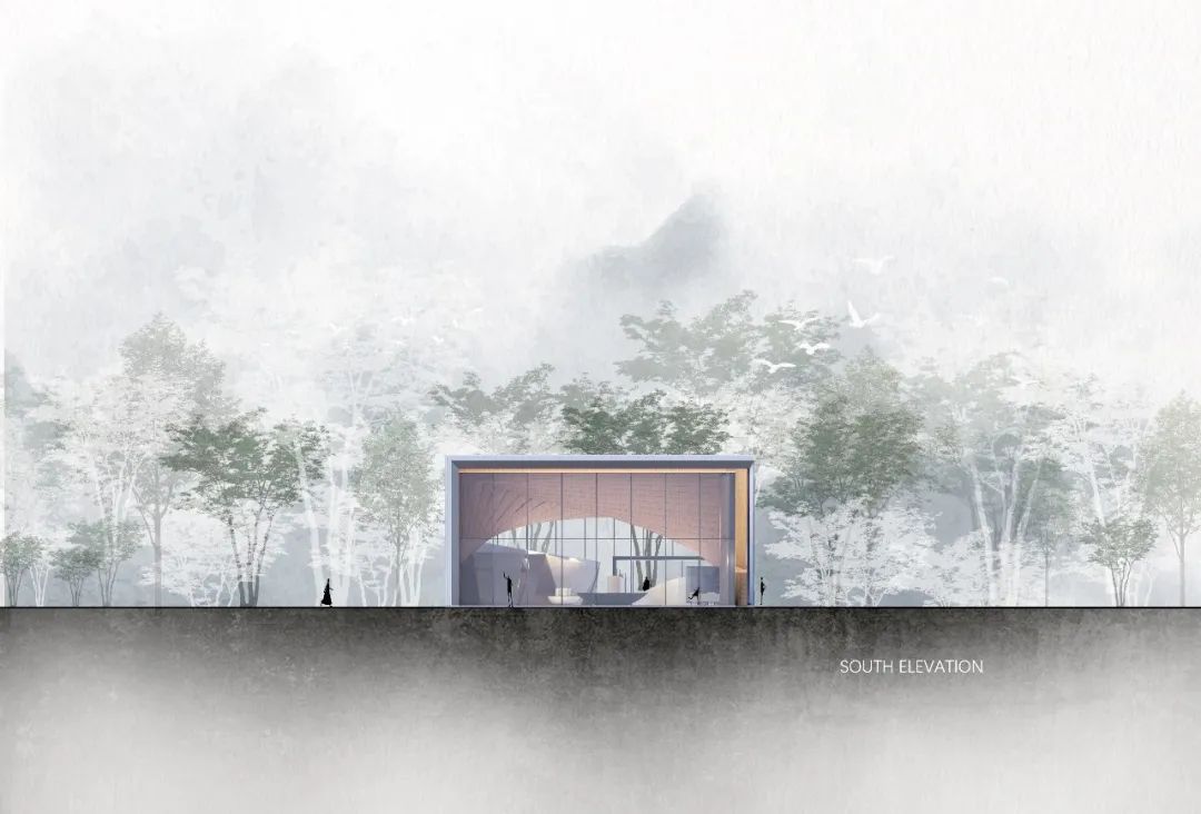 本案以谦卑的姿态植入场域之中,同时不乏个性和张力。材料的选择为胶合木、玻璃、钢等现代感很强的材料。结构的处理倾向于将结构杆件处理成纤细微小的状态,形式上轻盈通透,能够极其自然的与环境融合。这样的建筑是单纯而真实的,没有矫揉造作。