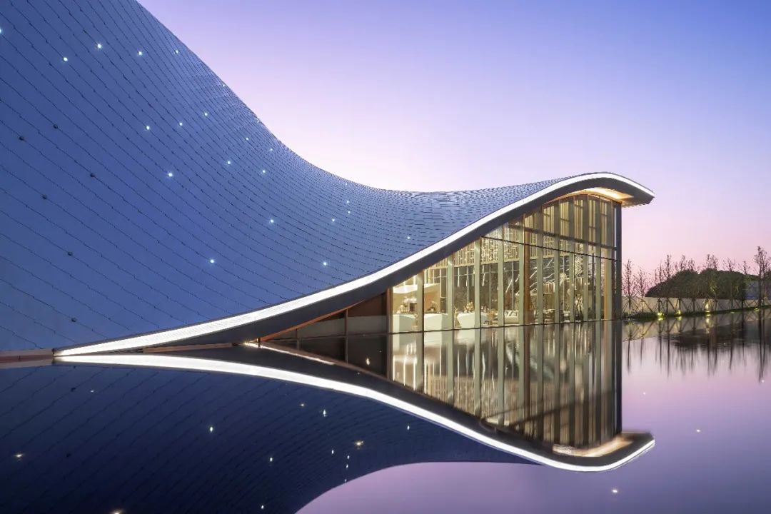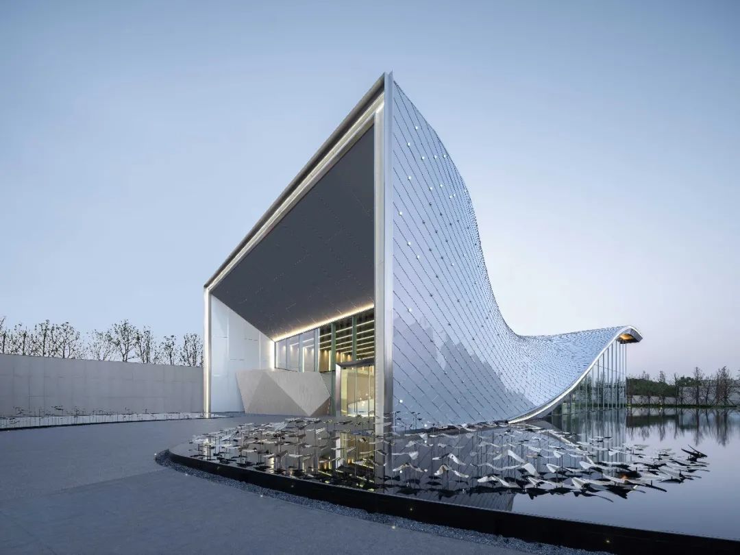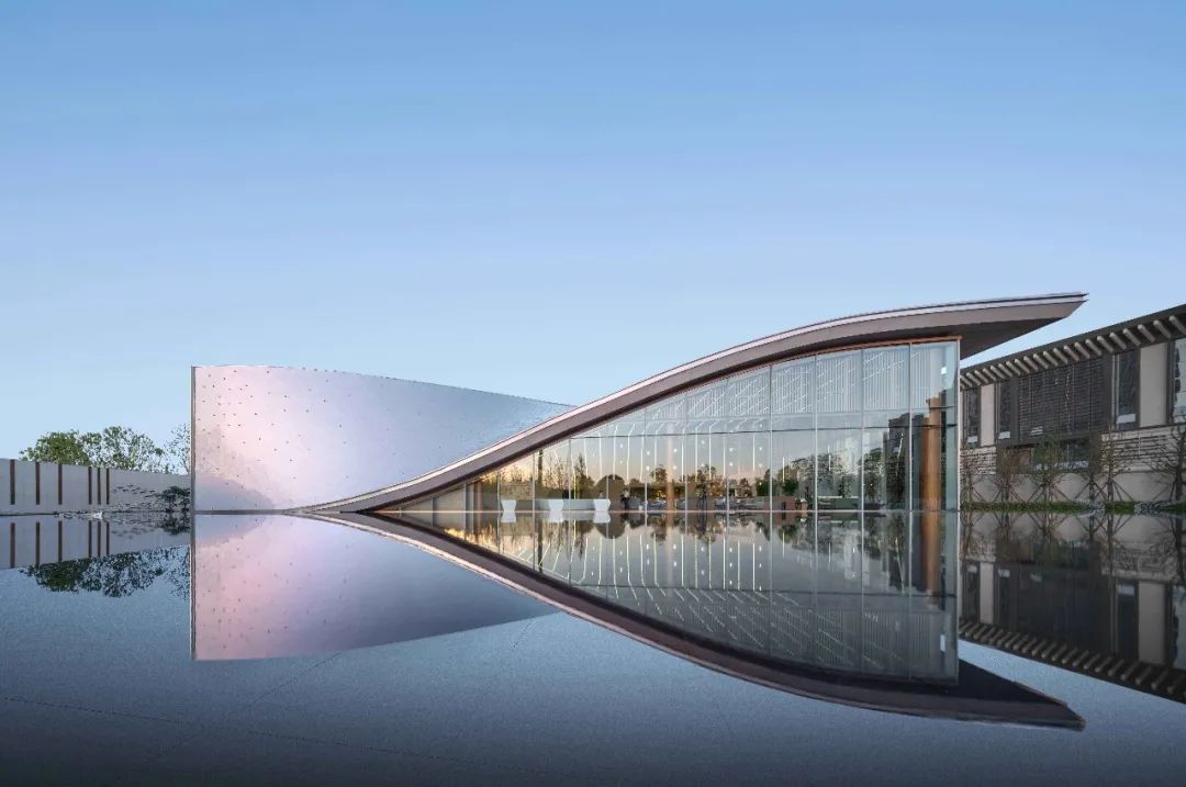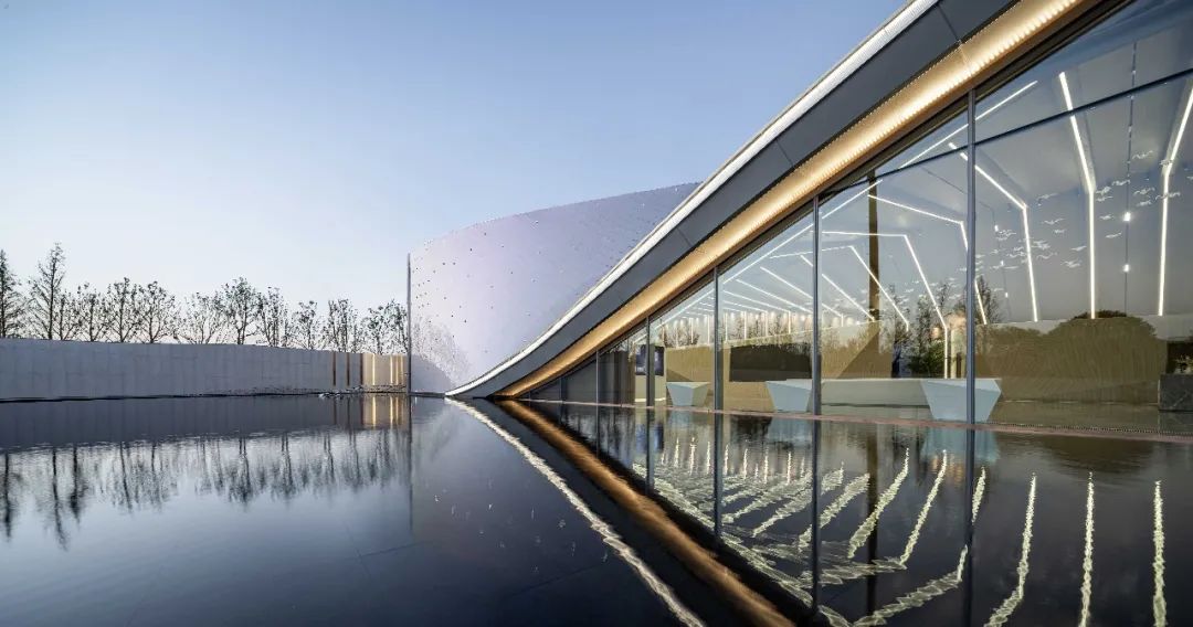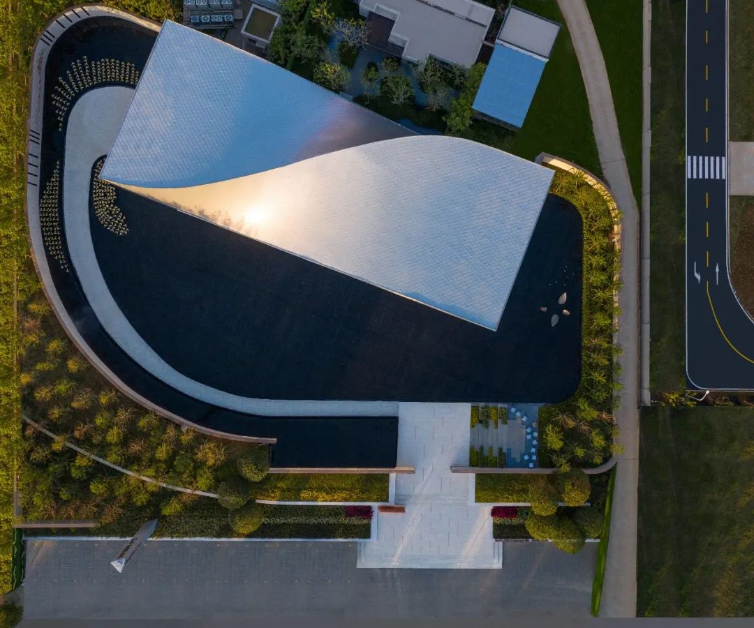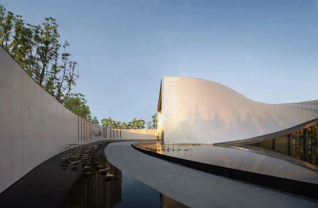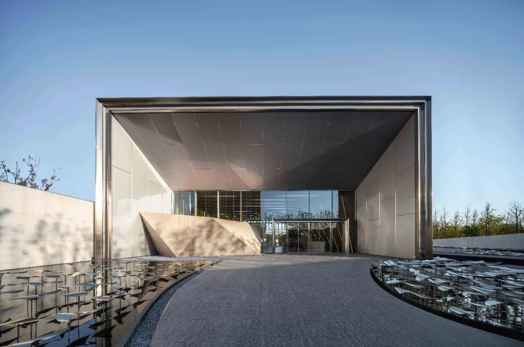 Under the sunlight, the silver gray magic color aluminum plate makes some material properties of the building skin disappear, highlighting the curve lines full of tension. The introduction of mirror water has aroused endless imagination, and the change of natural light in the whole process is extremely vivid.