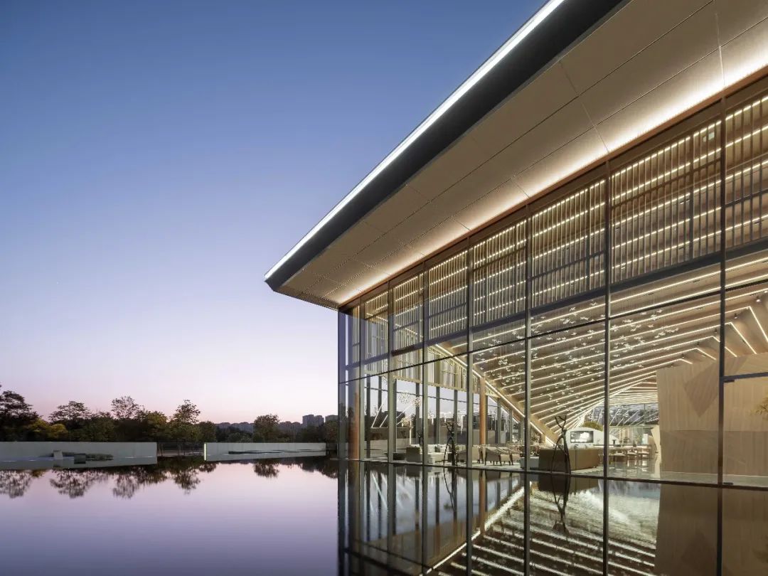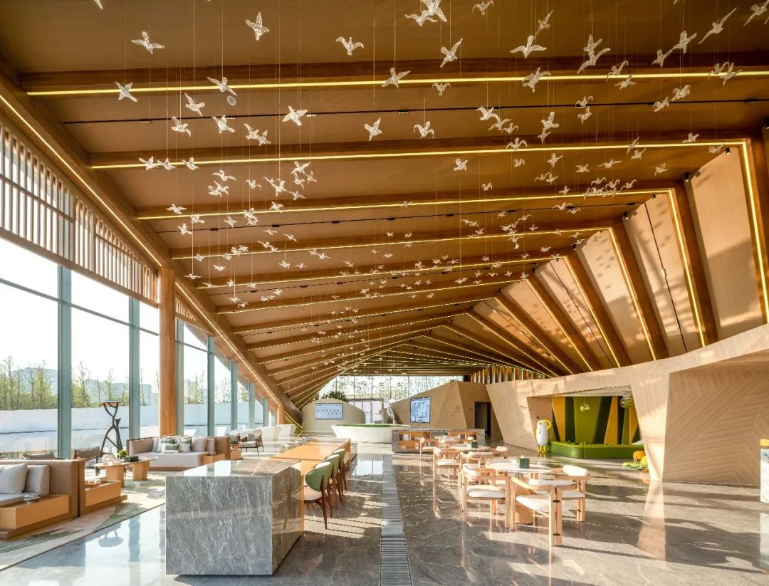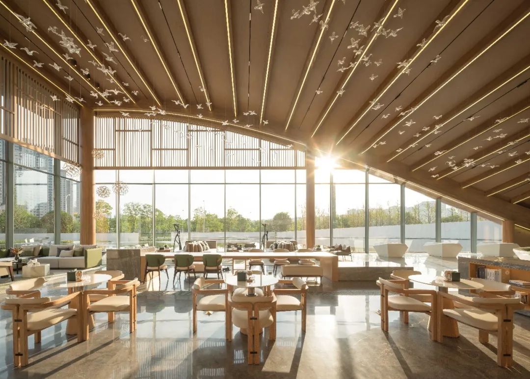 This case is located in Huashan District of Wuhan East Lake high tech Zone. At the same time, on the ecological green wedge planning belt of Dadong lake, it is adjacent to many lake forest parks, such as Huashan River Park, automobile theme park, ecological agriculture science park, etc., with rich natural landscape resources. Therefore, in response to the overall planning of Huashan new city, the designer of this case hopes to use the green prefabricated wood structure as the main structure to add bricks and tiles to this "green model city".