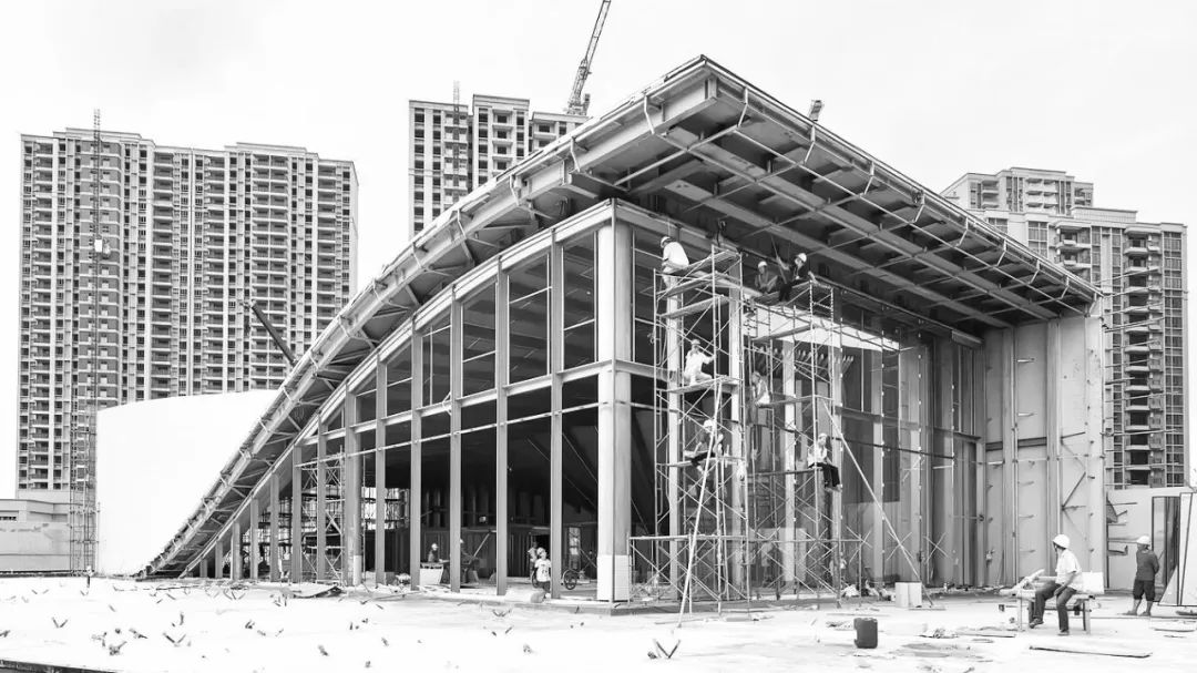 单跨40米的弧形梁是这个项目的亮点,弧形梁连接的是玻璃幕墙,这对大跨度的弧形梁的形变及施工精确度要求极高,工程施工时需3d维度精准定位。整体工程都进行工厂预组装,现场再装配式施工,才得以保障工程的毫米级误差。