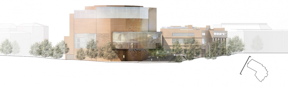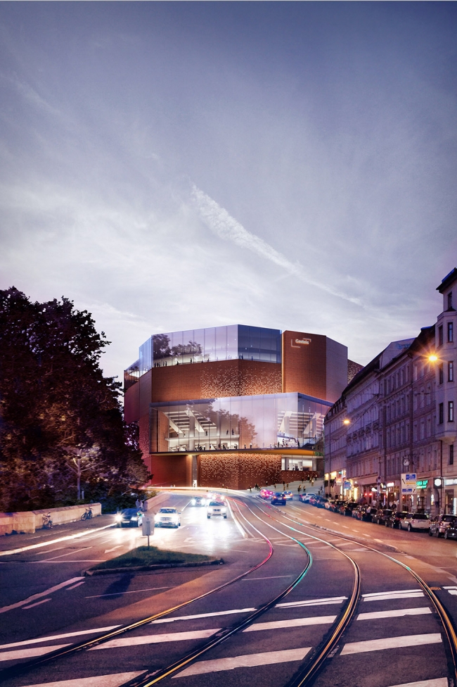 2018年10月24日,慕尼黑音乐厅在集中使用了30年后,开始了修理改造计划。经过了国际竞赛和投标,HENN的设计方案最终获选。慕尼黑音乐厅是欧洲最大的文化中心,每年要接待大约两百万游客。慕尼黑音乐厅最初由Raue, Rollenhagen, Lindemann和Grossmann作为合作伙伴设计而成,在1984/85年开放。音乐厅的现代化和广泛的文化活动令慕尼黑有了一栋全球独一无二的建筑。新设计中加入了一个新的建筑元素:玻璃栈桥,用来连接建筑已有部分和新的玻璃幕墙区域,玻璃幕墙令过路的行人可以看到音乐厅内部充满活力的景象,并欢迎游客和职员成为城市文化生活的一份子。这个“Kulturbühne”(文化舞台)同时作为新音乐厅的主要象征,另外,从设计方面看,透明、开放的玻璃幕墙和原有建筑类似于庞大石头的体块形成对比。为了实现“一个”(“ONE”)音乐厅的设想,新的文化舞台在水平和垂直方向都有所延伸,来保持音乐厅各部分空间上的连续性。文化舞台同时可以作为交通节点、前厅、展览和活动空间使用。它为游客和员工提供了清晰的视野,同时还作为建筑各个功能之间的连接路径。除去使用功能外,文化舞台的每个元素都有它的定位和特征,无论是交响乐演奏厅(Philharmonic)、卡尔奥尔夫礼堂(Carl Orff Auditorium)、图书馆还是慕尼黑Volkshochschule(继续教育中心——MVHS)。从城市规划角度来看,引人入胜的台阶抵消了音乐厅原先孤立的感觉,使音乐厅与“gache Steig”(从Isar河到新音乐厅的上坡)形成了更合理自然的连接。