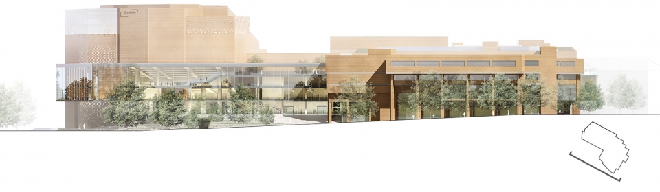 October 24th, 2018 – After 30 years of intensive use, the Gasteig cultural centre in Munich is to undergo renovation and remodelling. Following the international competition and tender process, HENN‘s proposal has been selected for the renovation of the Gasteig in Munich. With around two million visitors annually, the Gasteig is the largest cultural centre in Europe. It was originally designed by the architecture partnership Raue, Rollenhagen, Lindemann and Grossmann and was opened in 1984/85. The modernisation of the Gasteig provides Munich with a building that will be globally unique thanks to its wide range of cultural activities. The design introduces a new architectural element in the form of a glazed bridge, connecting the existing parts of the building and bestowing a new transparency on the complex – an innovation that opens the Gasteig up to city, affords perspectives of the inner vibrancy of the building, and welcomes visitors and staff alike to be part of the city’s cultural life. This “Kulturbühne” (Cultural Stage) simultaneously acts as the leitmotif and generates the identity of the new Gasteig, whilst in design terms its transparent, glazed and open architecture stands in deliberate contrast to the monolithic and mineral-like character of the existing building. Following the idea of “ONE” Gasteig, the new Culture Stage extends both horizontally and vertically as a spatial continuum through all the sections of the Gasteig. The Cultural Stage functions simultaneously as a circulation node, foyer, exhibition space and an event area. It provides both visitors and staff with clear orientations and short routes between all of the building’s functions. Regardless of its use, the Cultural Stage gives each element its own locational anchoring and individual identity, be it the Philharmonic, the Carl Orff Auditorium, the library or the Munich Volkshochschule (Centre of Further Education – MVHS). In urban planning terms, the previous isolation of the Gasteig is countered by means of an inviting flight of steps. An emphasis is given to the gradient towards the River Isar, forming a spatial and logical continuation of the so-called “gache Steig” – the steep ascent from the Isar to the new Gasteig.
