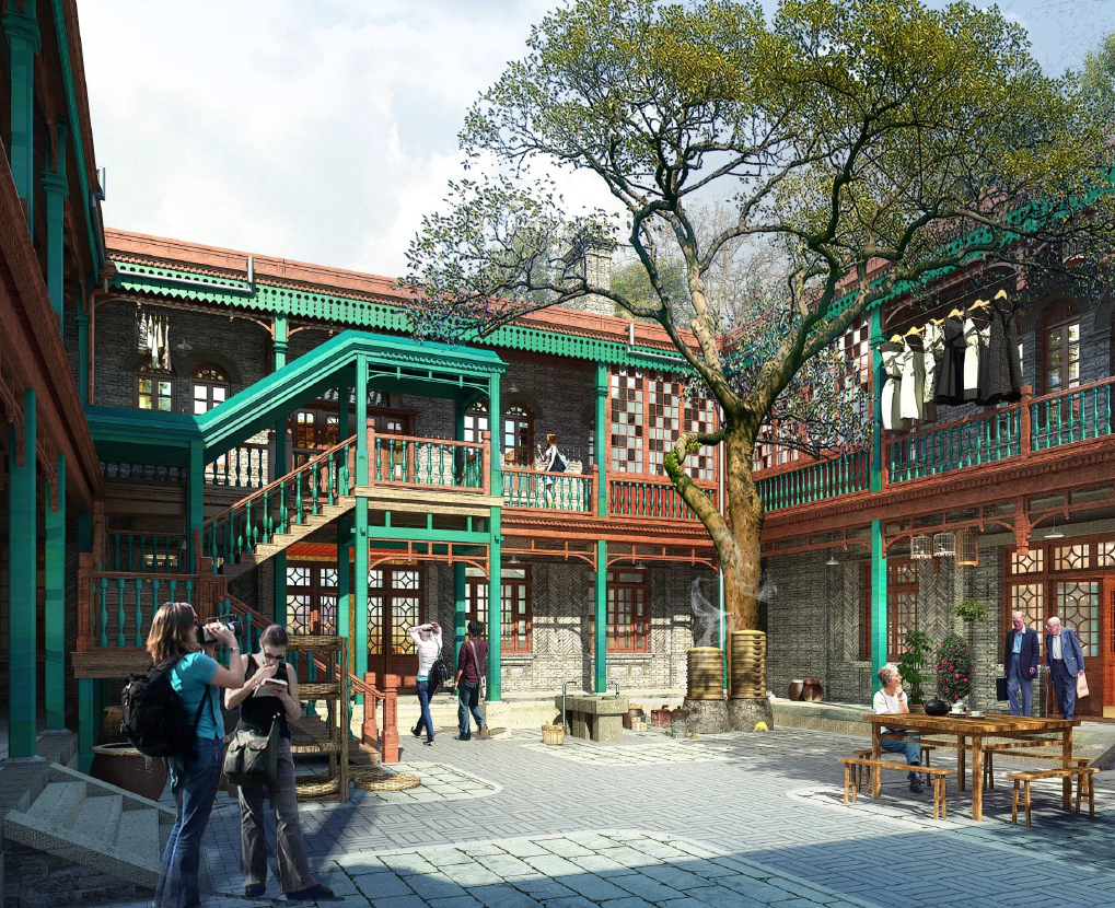 The Film Commune Project II (D-01-1, D-01-2, Old Style Street of Socialist Beijing) Phase I was designed by Huacheng Boyuan Engineering Technology Group Co. LTD. The whole film commune project II (D-01-1 and D-01-2 of the old socialist Beijing Style Street) is divided into three red lines (B-01, D-01 and J-01), and A, B, C, D and E zones are designed. The project applied for construction this time is the first phase of D-01-1 lot, which includes five areas: the southern hutong, the Town God Temple, the 15th Yard, the entertainment center, and the northern Hutong.