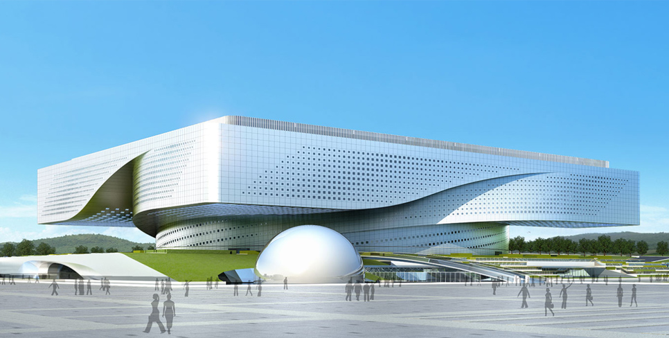Located at the intersection of Wuhan Optics Valley High Tech Avenue and Huashan Avenue, the Museum covers an area of 190000 square meters, with a total construction area of 72000 square meters. The project mainly includes three parts: the science and Technology Museum, the ball screen cinema and the landscape bridge. The design of the main building of the science and Technology Museum takes "Optics Valley core and science and technology engine" as the starting point, and the external shape is reflected in a spiral and gradually changing streamline form, which is beautiful and dynamic.