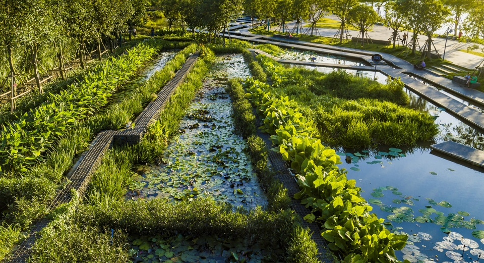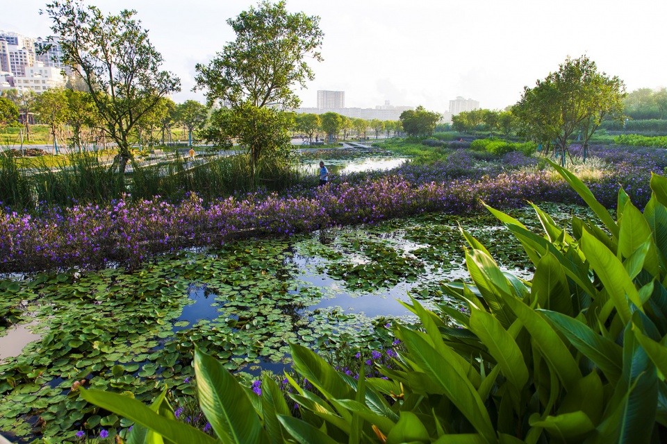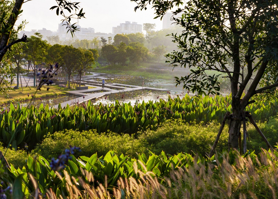 通过这些景观设计策略,原先持续恶化的河道和亲水性极差的城市边缘地带,已成功改造成一个集雨水净化、生境营造、满足市民休闲功能于一体的海绵公园 。