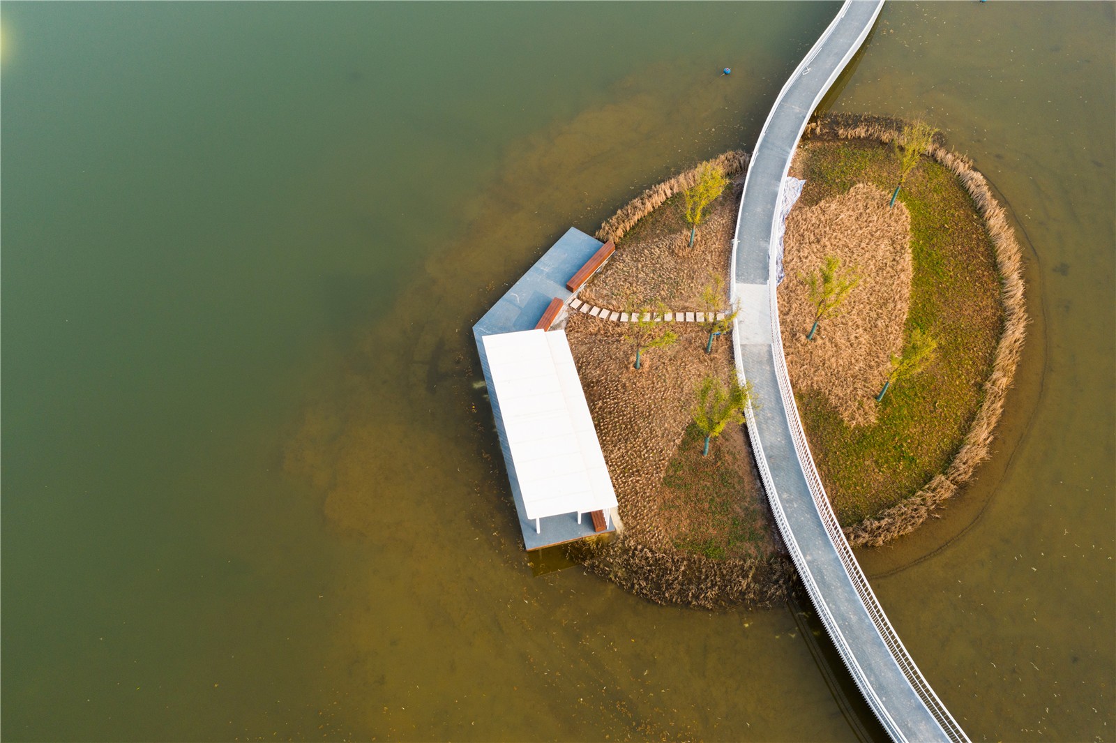 针对上述问题与挑战,本案例中尝试了栈桥式亲水湖岸的设计。具体做法有三点: