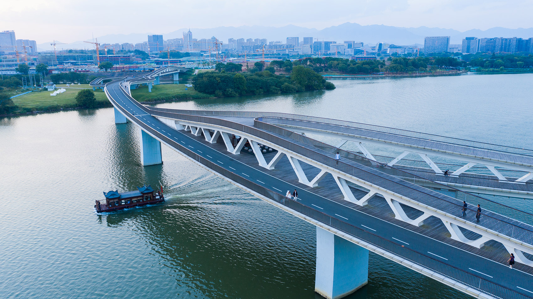 Project challenge: Improve urban slow traffic, solve the problem of incomplete slow traffic system between the west district of Quzhou city and the historical old urban area.. Relieve traffic pressure on Xi’anmen Bridge and Qujiang Bridge. Ensure the width and height of the river under the bridge to meet the navigation standards of class IV waterway. Show the characteristics of Quzhou’s landscape and create a charming transportation circle of tourism economy.