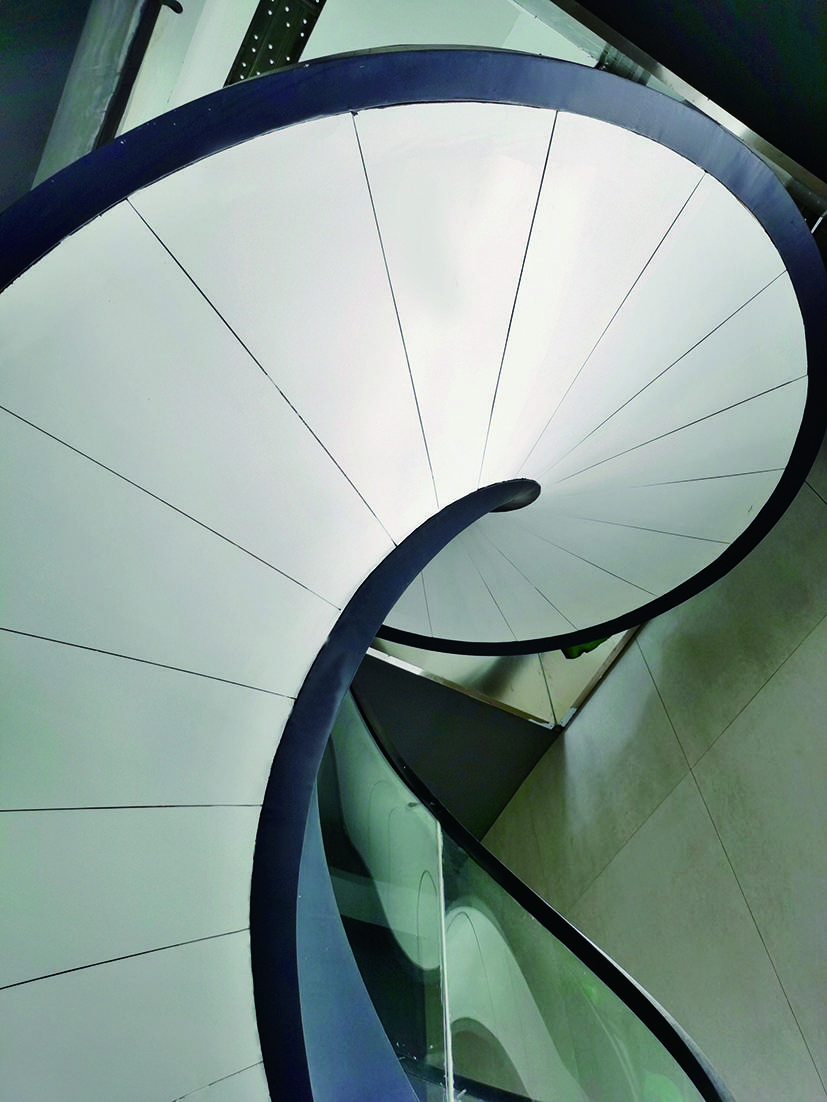 从设计的视角看,横向的平面规划到纵向的天、墙、地造型,都把高科技的设计语言发挥得淋漓尽致。流线的起伏、流动,象征着企业的承载和不断地前进。简练的硬装,去除过多的装饰,独具特色的前台设计,旋转楼梯柔美的线条,彰显力量的上升。