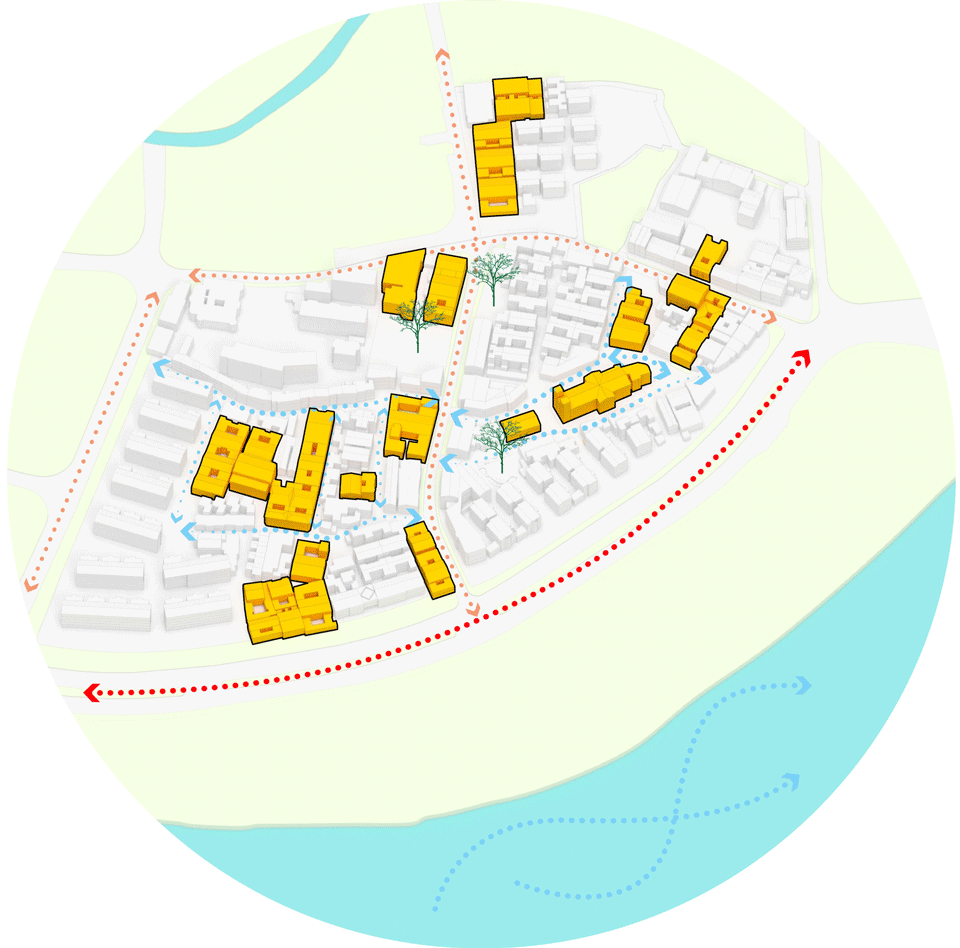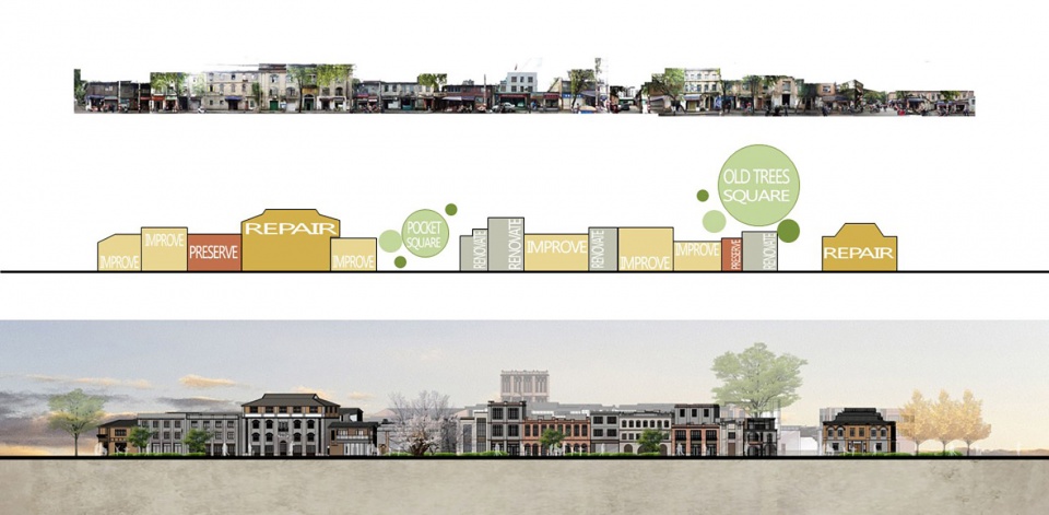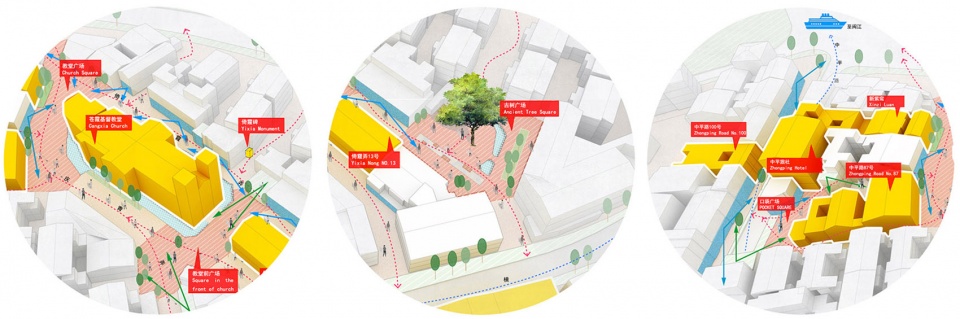 In the context of inheriting the original spatial morphology, this project provides more alleys of smaller scale spreading and extending, structurally mending the street network. Therefore, spatial adaptability for commercial activities can be highly improved to help this area grow prosperously.