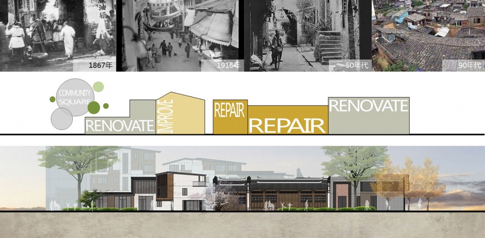 Inherited from the historical feature of Cangxia, this project uses the method of “collage city” for creating a symbiotic relationship between old and new architectural space. The solution of this project is neither to build modern block nor historical reserve, but the spatial recombination of various historical segments, which allows thehistory of Cangxia participates in the progress of its future development.