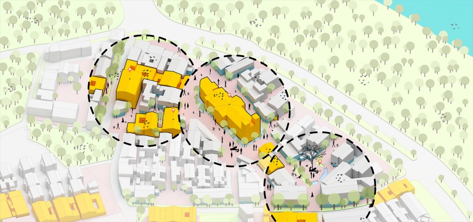 在纵横的街巷和密集的肌理之中,设置不同大小尺度的公共开放空间,如同针灸一般,在维护原有的场地形态下,对空间进行不同程度的点状激活,为人们提供更多大小合宜、功能多样的共享场所。