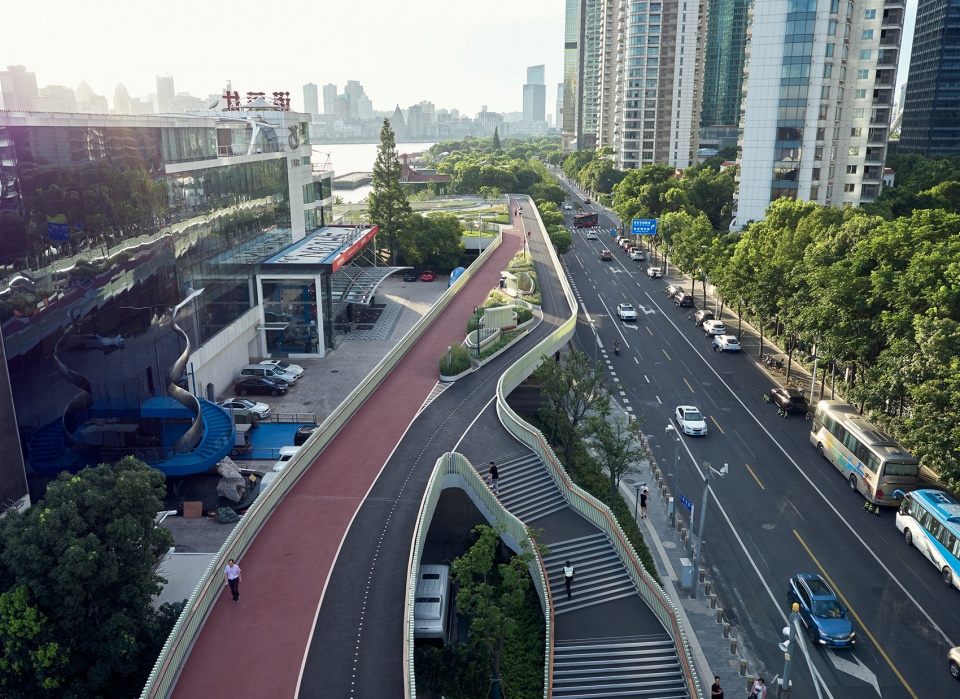 Dongchang Elevated Passage is a trestle bridge for only cyclists and pedestrians, in the Project on Public Space Connection of both Banks of Huangpu River, as one of the twelve bridge across the main space breakpoints like river and ferry terminals on the East Bank of Huangpu River, Dongchang Elevated Passage has been a vivid example that presents how to coordinate multi-interests, improve urban public space quality and maximize its publicity. This elevated passage goes cross over Dongchang Ferry Terminal, borders on the flourishing Lujiazui CBD area.