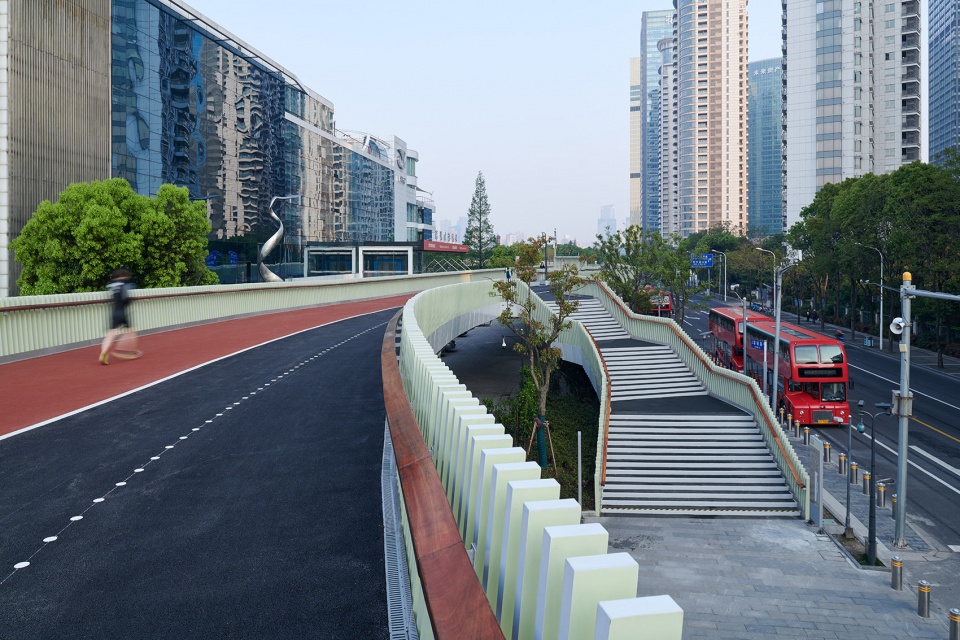 The elevated passage accommodates green landscape of different scales and street seats, awning, where cyclists, runners and walkers can rest. Dongchang Elevated Passage achieves a perfect integration into the city with aquite novel form. It harmoniously coexists with the existing buildings and landscape, and creates a rich and varied urban landscape as well as a free and inclusive open space.