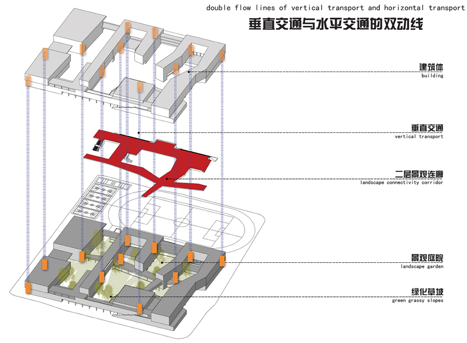 We combine regional spatial features with architecture, and emphasize the penetration of spatial landscape and the evolution of spatial form. The space design continues the design idea of the building, and increases the mobility and diversity of the space while ensuring to meet the needs of the conventional teaching space.