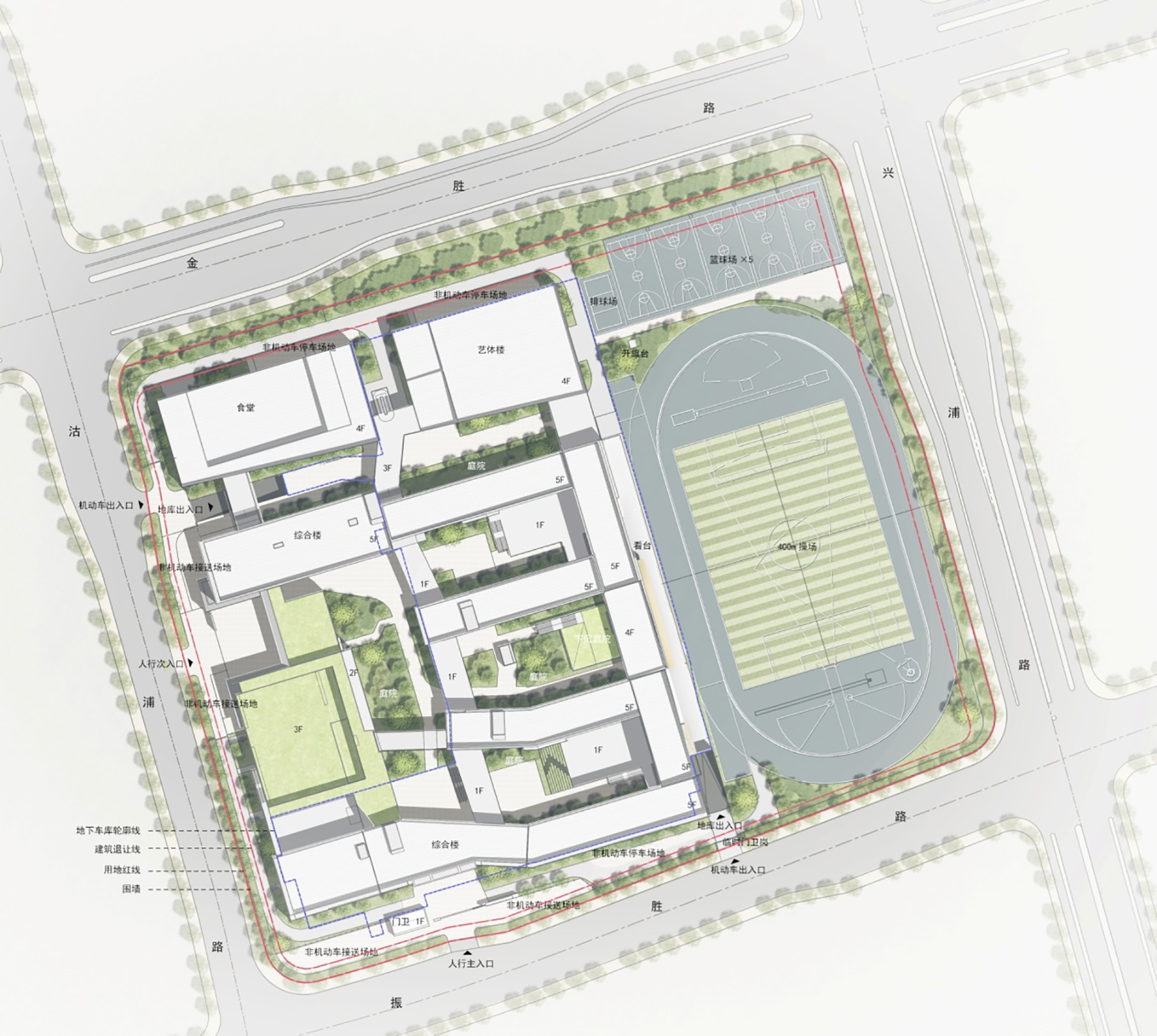 The project site is located in the west of Xingpu Road, the south of Jinsheng Road, the east of gupu road and the north of Zhensheng road in Suzhou Industrial Park. The project covers an area of about 6.25 hectares. It is planned to build a school with 90 classes. There are abundant water systems around the base. Opposite to the gupu River on the west side is the Jinpu Park, which has a beautiful landscape and faces the original Xingpu school across the river.