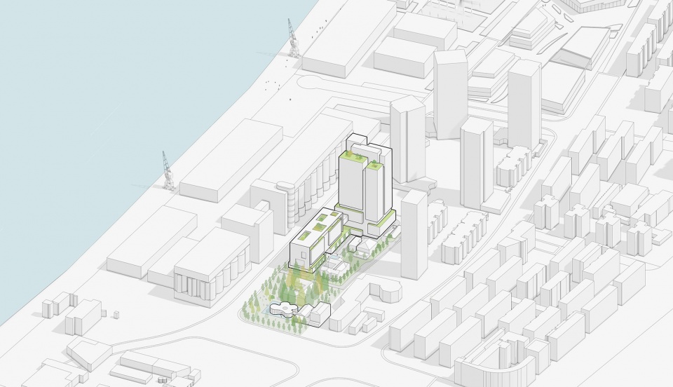 The design ambition does not lie in creating an eye-catching spectacle building, on the contrary, it is intended to address the urban conditions in a restrained manner, providing a monolithic, minimal building responding and correlating to the surroundings.