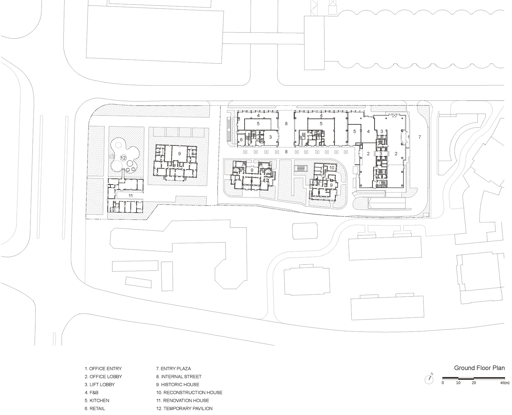The E15-3 Block Urban Renewal Project lasts for six years. The scope of design intervention includes: the office and supporting facilities of Chinese enterprises in the new L-shaped plot, the reconstruction of office space of the old buildings in the plot on the west side of the base, the coordination of the style and features of historical and cultural buildings and the construction of the inner blocks of the base, and the implantation of the temporary cultural and artistic space on the west side.