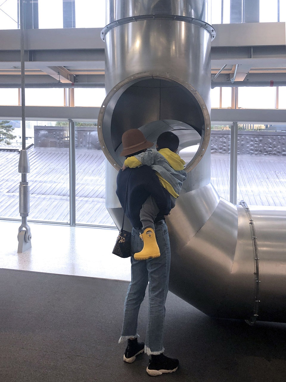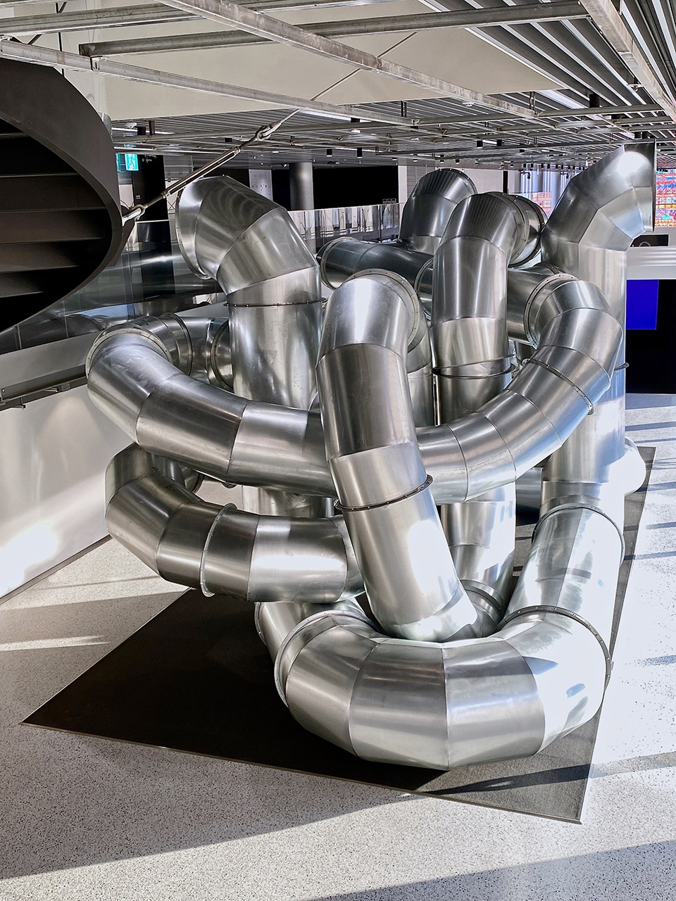 Liminal City is a site specific installation and is designed to stimulate interplay within the gallery spaces of the Hyundai Motor Studio Busan. Various limbs of Liminal City are fitted with mirrors. They work as periscopes that create visual connections across the length of the gallery and in between the ground floor, the second floor, and mezzanine level.