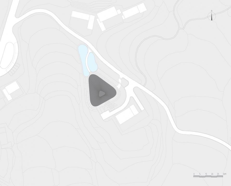Anshi Village, Yibin, Sichuan, is an ordinary village behind Nianpan Mountain. The villages are connected by lots of lanes, scattered fields and ponds, and different houses and trees. It is a typical southern Sichuan settlement. The Bamboo Workshop is located in a crescent-shaped terraced field deep in Anshi Village. The natural texture of the terraced fields and the triangular site boundary formed by the country road naturally form the outline of the building. Combined with the business plan of rural revitalization in Anshi Village, the Bamboo Craft Workshop is conceived as a workshop focusing on bamboo weaving technology research.