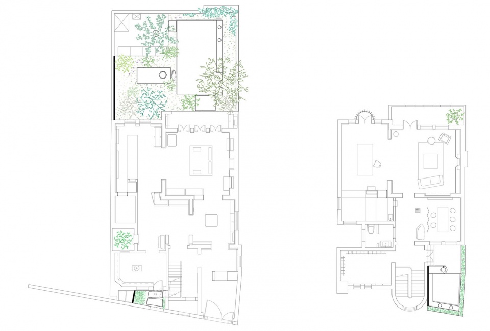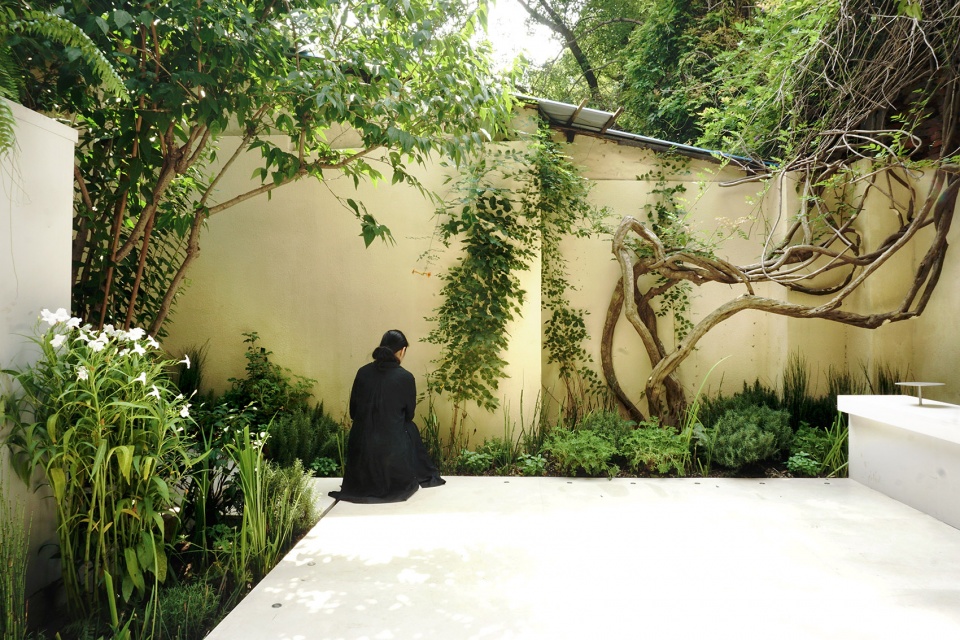 In addition to preservation and renovation of the greens and the well, a mirror wall is added in the garden. Through reflection from the mirror wall, limited space can be extended and the greens can be multiplied. The reflections and the real silhouette of the plants create a dreamy world – a fantasy world of infinite nature, a hidden universe full of colors and textures.