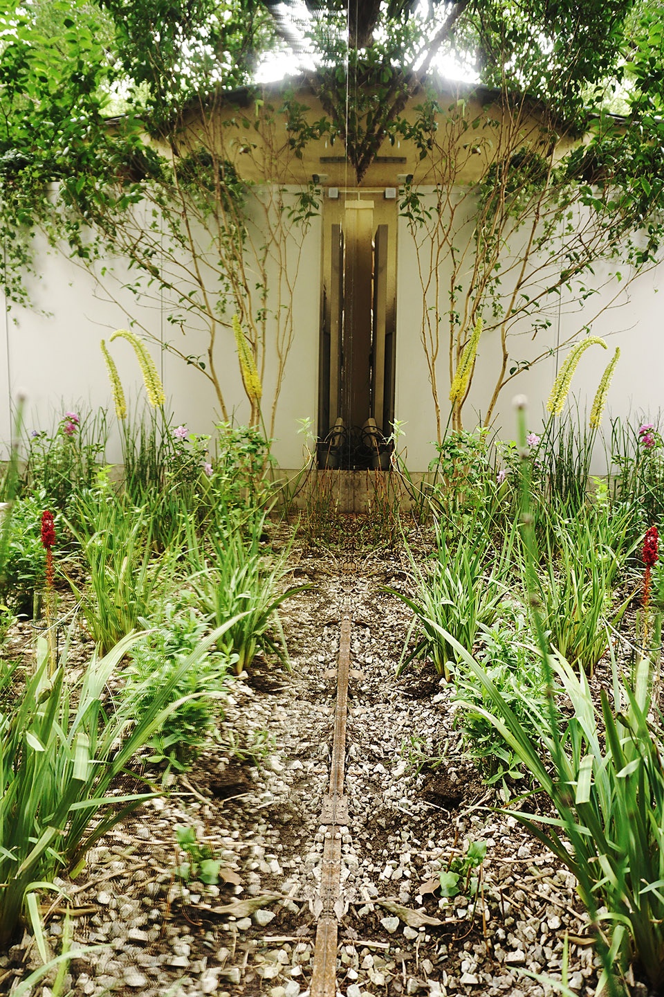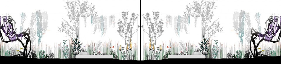 The garden is also a large flora installation. A few movable glass tubes are installed in the garden as containers for flower arrangement. With different events, the garden can be transformed and decorated with different flowers. A garden becomes not only a garden, but an infinitive device can be changeable and adaptable.
