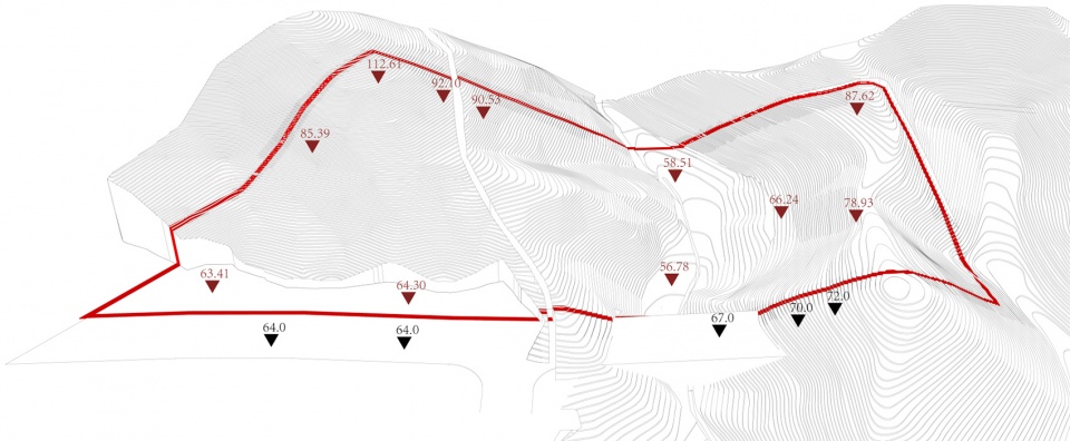 It is generally believed that the layout of buildings parallel to the mountain contour lines can save the costs of earthwork. However, this kind of design will make each building lies on a different elevation, resulting in a large change in elevation from inside to outside of buildings. It could be inconvenient and bring risks to schoolchildren for attending school. When we build teaching buildings perpendicular to the contour lines of the mountain, we make one end of each building lies at the foot of the mountain. Therefore, the height of the first floor in each building is basically the same.