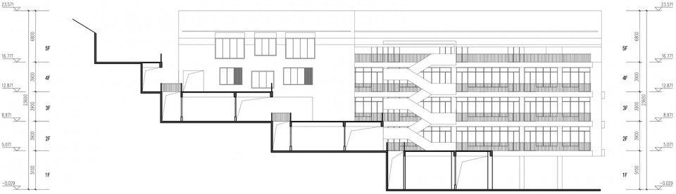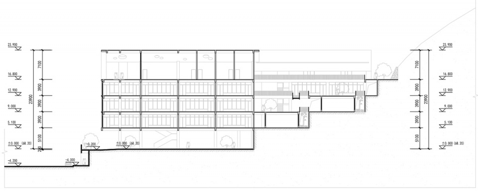 In Italy, Spain and some other places, villages are sometimes “visiblely”spread out on the top of mountains. However, villages in China are mostly “hidden” at the foot of the mountain or on the mountainside. In this project, we try to lower the height of the four teaching buildings as much as possible, making it as the same height of the contour line and lay out radially along the mountain. Between the teaching buildings, there are stepped garden platforms, which are spreading along at the foot of the mountain. Under the stepped platforms, many auxiliary functions are arranged on each floor, such as corridors, teachers’ offices and toilets. These rooms all have open windows facing the corridor, and additional patio windows on one side to meet the needs of moisture insulation, ventilation and lighting.