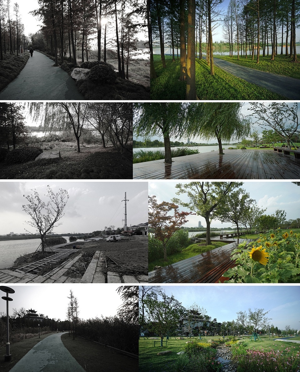 Before the Ming Dynasty, the Sanwan Section of the Canal (formerly known as Pagoda Bay) was straight and fast, which was not conducive to sailing. Later, under the leadership of Guo Guangfu, Magistrate of Yangzhou in the Ming Dynasty, the Canal was turned from straight to form three water bays, so as to get the name “Sanwan”. After liberation, Sanwan has gradually developed into an industrial zone in the south of Yangzhou, and it has gradually changed from an industrial zone to an ecological park from 2008 to 2017. In 2018, Sanwan was repositioned as the cultural and tourism core of southern Yangzhou. The development of the scenic spot ushered in new opportunities, but also demanded higher requirements, among which the waterfront space transformation has become a key step to improve the scenic spot.