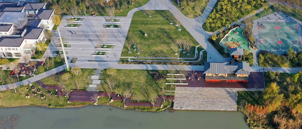 Before transformation, the shoreline was rigid and did not realize the due ecological benefits of the waterfront. It is designed to restore the water-friendliness and ecological diversity of the river bank through the treatment of the shoreline advance and retreat and the gentle slope wet plant belt. After maintaining a green land rate of 75%, permeable asphalt, embedded grass steps and aerial walkway are used to further reduce surface runoff.